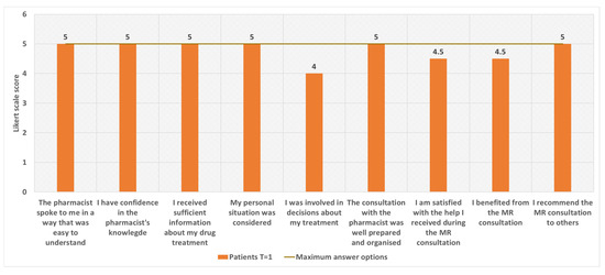 Figure 8 summarises the experiences of patients who participated in the pilot, as measured by a survey (see Supplementary Materials, Overview S3). All survey questions/statements were scored as satisfactory, with six out of nine being assigned the highest score. For example, patients felt that the pharmacist spoke to them clearly, was adequately knowledgeable, and was well-prepared for the consultation. The patient’s personal situation was also taken into account and the patient received sufficient information. As a result, all patients would recommend an MR to other residents of Aruba. The statement that received the lowest score (score 4/5), even though it still appears to be positive because it means ‘agree’, indicates that the greatest improvement potential is in the area of patient involvement in decision-making about their drug treatment.