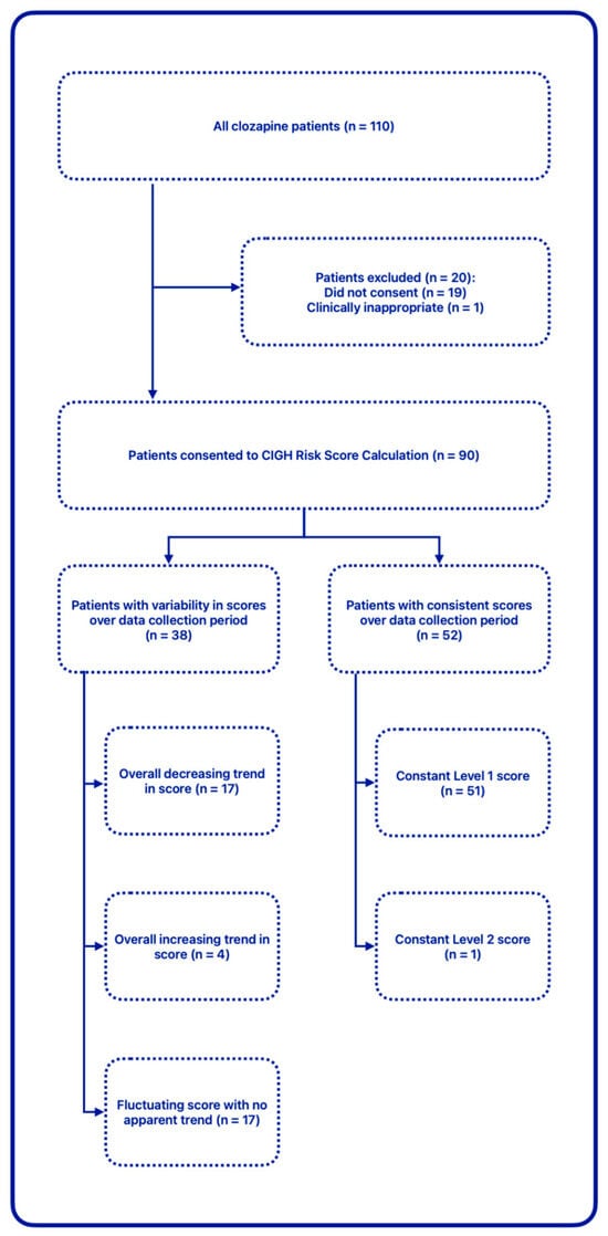 Figure 2 for the breakdown of the risk scores among the cohort. Individual variability in the cohort over the data collection period is visually represented in