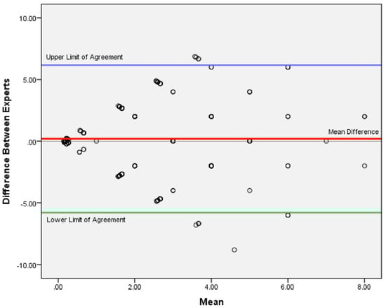The Bland–Altman plot was conducted to compare the preferences of two experts with either over or below 10 years of experience using SPSS software version 20.