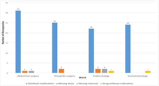 The most common type of unintentional MD identified at admission was omitted medication. Other types of discrepancies included incorrect dosage, incorrect dosing interval, and the documentation of medications without a corresponding indication. While previous studies have reported that the majority of patients experienced only one MD, this proportion was lower than observed in our study. The reported frequency of such discrepancies in the literature ranges from 40.8% to 83% [4,9,30,31,32].