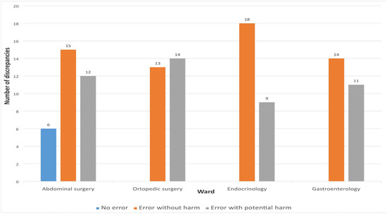 In our study, the omission of cardiovascular and antidiabetic medications was classified as an error with potential to cause harm. Within the cardiovascular group, antihypertensives were the most frequently omitted subgroup, consistent with findings from previous research [23,27]. Overall, 41.07% of the MDs identified were categorized as errors with potential to cause harm.