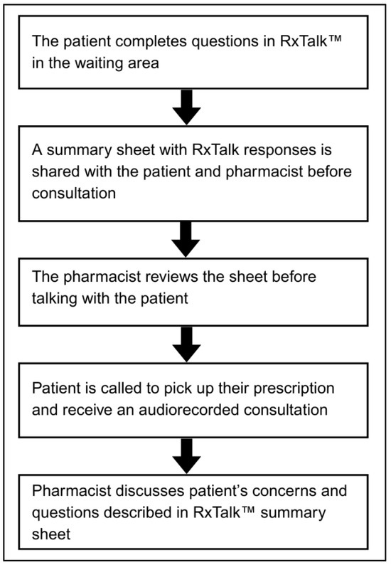 Using RxTalk™ was perceived positively by patients, as it prepared them for the consultation and gave pharmacists insights into their concerns. To expand evidence on the feasibility and acceptability of RxTalk™, future research needs to explore patient experiences in other pharmacy settings and urban locations and include different types of encounters, such as drive-thru visits and videoconferencing consultations.