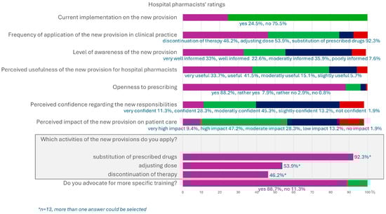 The comparison between community and hospital settings reveals substantial differences in the maturity and integration of expanded pharmacist roles. The emergency clause has become an established and appreciated part of community pharmacists’ professional toolkit. By contrast, the new provision on the expanded role of the hospital pharmacist has not yet transitioned to operational practice. Community pharmacists work independently and directly interface with patients, which facilitates the autonomous use of legal tools. Hospital pharmacists operate in more hierarchical and interdisciplinary environments, where any expansion of responsibilities requires consensus, infrastructure, and clear protocols.