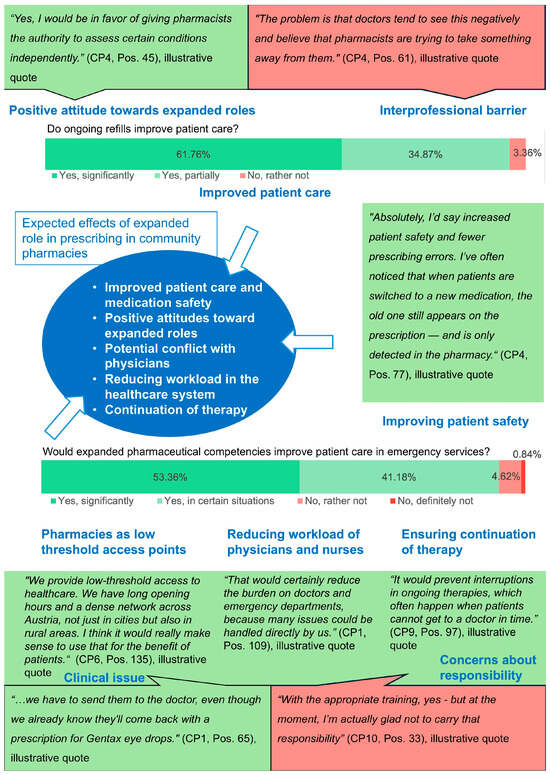 This study explored the use of the emergency clause and the perspective of Austrian community pharmacists on an expanded role in prescribing, as well as the early implementation of a new provision on expanded prescribing by clinical pharmacists in hospital settings. By combining quantitative and qualitative data, the research offers nuanced insights into pharmacists’ professional practice and attitudes toward expanded prescribing roles.