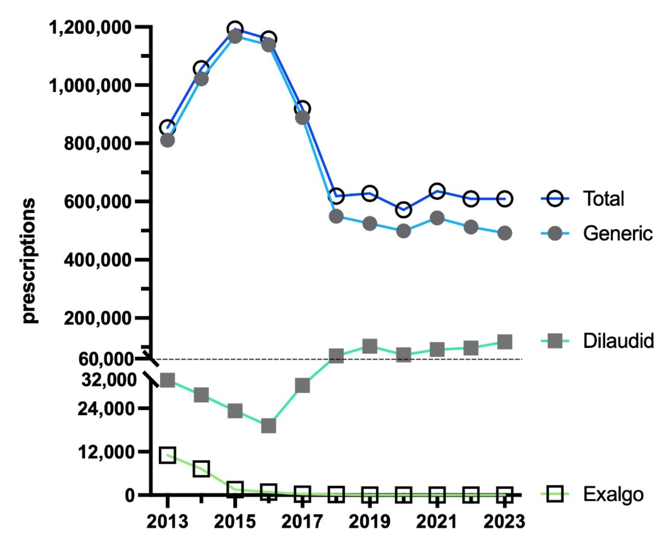 - Piper, B.J.; Shah, D.T.; Simoyan, O.M.; McCall, K.L.; Nichols, S.D. Trends in medical use of opioids in the US, 2006–2016. Am. J. Prev. Med. 2018, 54, 652–660. [Google Scholar] [CrossRef]