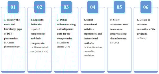 Our CBPE curriculum followed a specific sequence adapted from the work of Frank et al. [] as well as Kern’s six-step approach [], as detailed in Figure 1. Recognizing the relatively low academic qualifications of DTP pharmacists in China, the curriculum focused on competencies in pharmaceutical care such as medication therapy management (MTM) and patient education, as well as pharmacology and cancer pharmacotherapy. Our main goal was to equip DTP pharmacists with the knowledge, skills, and confidence necessary to provide adequate pharmaceutical services and achieve optimal patient outcomes.