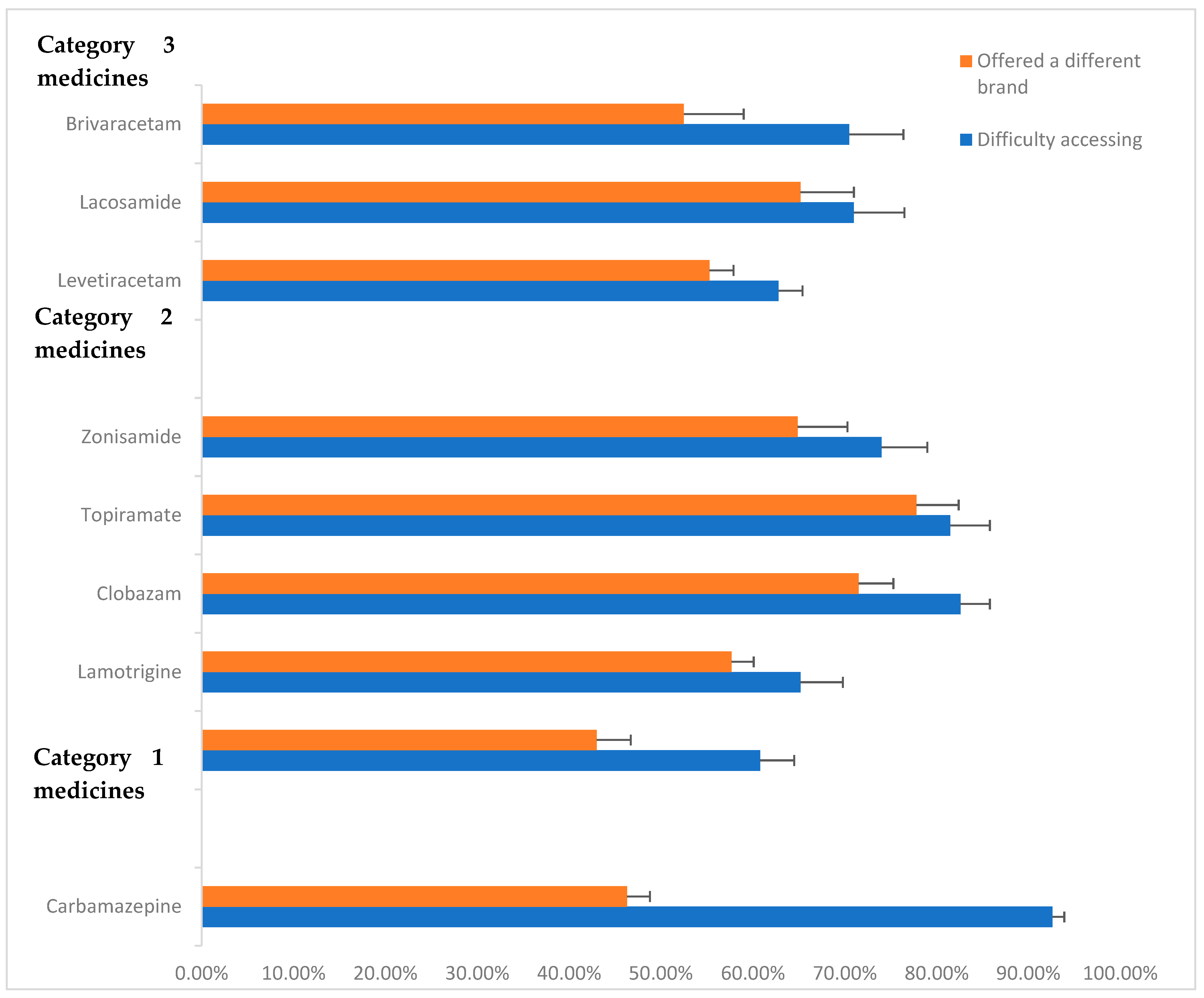 - Welton, J.; Stratton, G.; Schoeninger, B.; Low, M.H.; Moody, A.; D’Souza, W. Shortages of antiseizure medications in Australia and the association with patient switching, and adherence in a community setting. Epilepsy Behav. 2023, 141, 109145. [Google Scholar] [CrossRef] [PubMed]