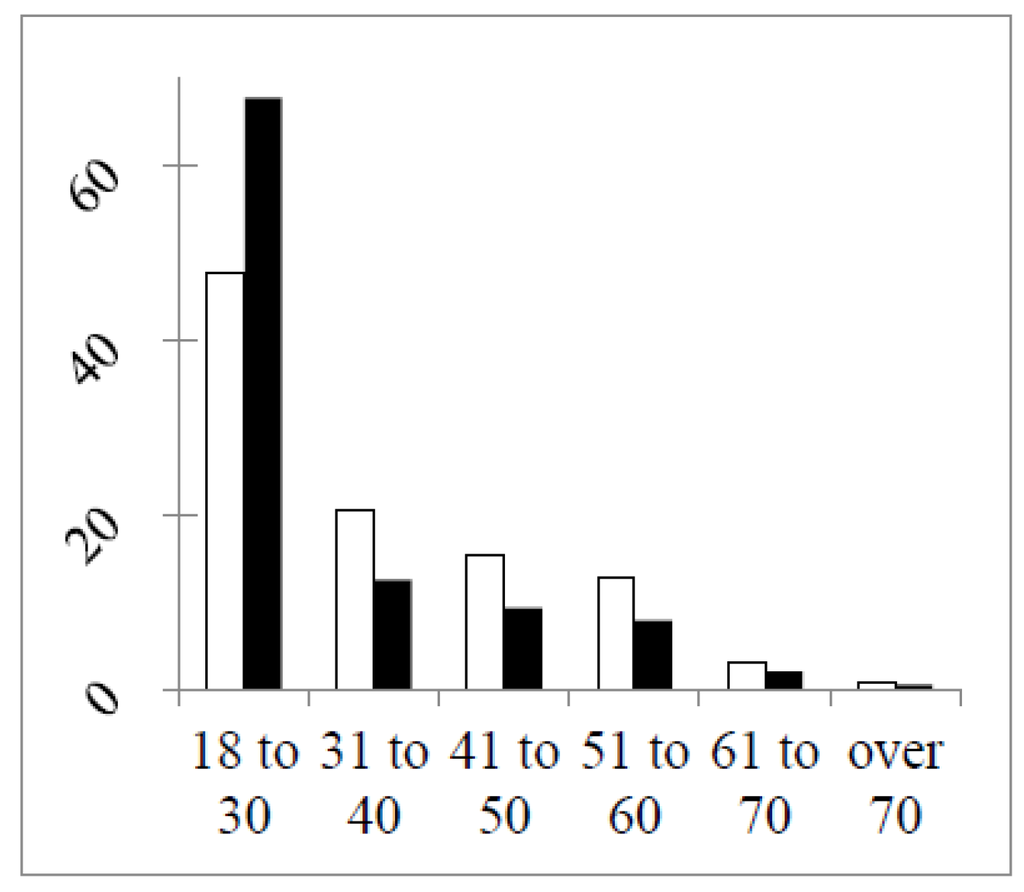 In Figure 1 are shown the distributions of respondents by age in the two rounds.
