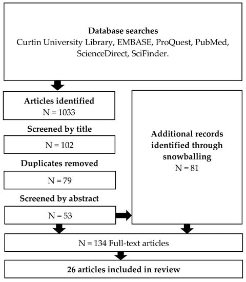 Literature search. Keyword searches of the databases were used to identify articles for potential inclusion in the review. Additional articles were identified through snowballing.