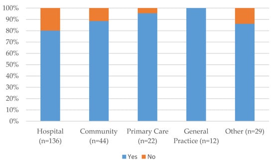 A total of 243 (61.8%, n = 393) pharmacy technicians responded when asked if they would like to expand their role. The results across all sectors imply that the majority of pharmacy technicians want to expand their role 206 (84.7%, n = 243) with the highest percentages being in primary care, 21 (95.5%, n = 22) and community pharmacy 39 (88.6%, n = 44). As opposed to 37 (15.2%, n = 243) across all sectors who said they would not want to expand their role. The results are presented sector by sector in Figure 1.