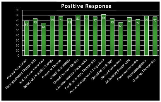 Percentage responses for various topics/electives as part of clinical pharmacy course/discipline.