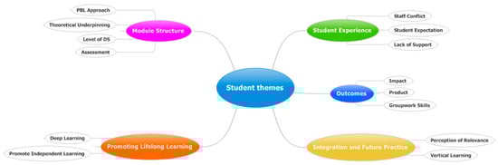 Module structure is concerned with the use of PBL as a teaching method, how the module is assessed, the level of directed study (DS) and theoretical underpinning. Promoting lifelong learning is the overarching theme for deep learning and promoting independent learning. Integration and future practice involves the topics of vertical learning and the student’s perception of relevance. Outcomes are definable outputs such as group work skills, pharmaceutical product production and impact. Student experience involves student expectation, staff conflict and lack of support.