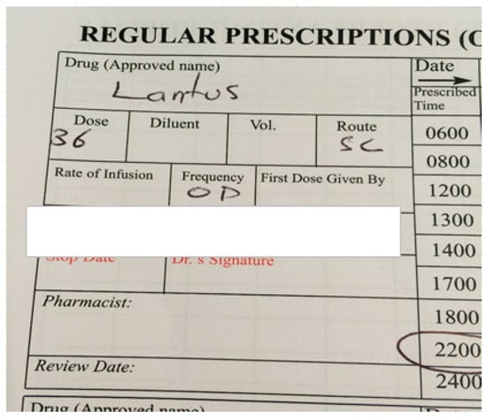 - Lamont, T.; Cousins, D.; Hillson, R.; Bischler, A.; Terblanche, M. Safer administration of insulin: Summary of a safety report from the National Patient Safety Agency. BMJ 2010, 341, c5269. [Google Scholar] [CrossRef] [PubMed]