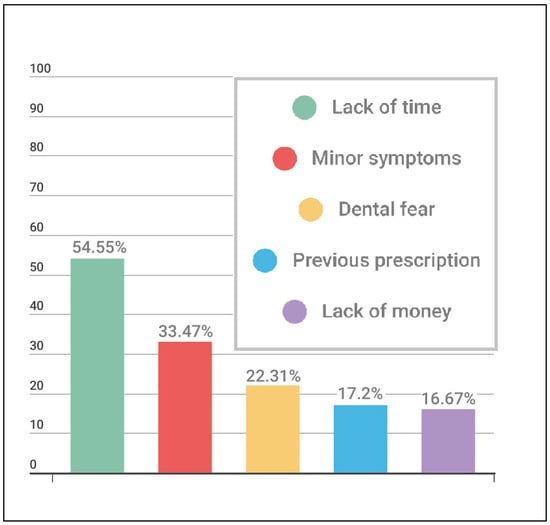 - De Lima, B.R.; Ferreira, M.B.C.; Casagrande, L. Self-medication in Children and Young Patients at University Dental Service. Pesqui. Bras. Odontopediatria Clin. Integrada 2016, 16, 229–234. [Google Scholar] [CrossRef]