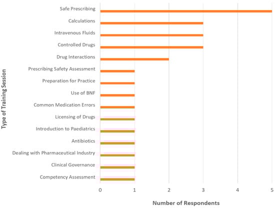 A range of training sessions delivered by pharmacists at the participating NHS Trusts (n = 14/27, excluding pharmacists from Local Education and Training Boards).