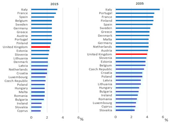 Percentage of population aged 85 and over in EU countries in 2015 and 2035 (projected) [10].