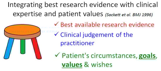 Integrating best research evidence with clinical expertise and patient values [15,16].