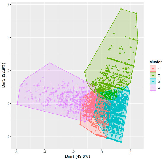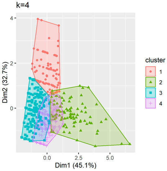 - Calinski, T.; Harabasz, J. A dendrite method for cluster analysis. Comm. Statist. Theory Methods 1974, 3, 1–27. [Google Scholar] [CrossRef]