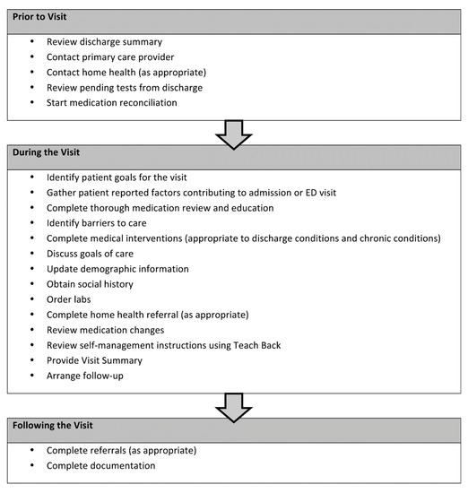 16. Sevin, C.; Evdokimoff, M.; Sobolewski, S.; Taylor, J.; Rutherford, P.; Coleman, E.A. How-to Guide: Improving Transitions from the Hospital to the Clinical Office Practice to Reduce Avoidable Rehospitalizations; Institute for Healthcare Improvement: Cambridge, MA, USA, 2011.