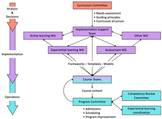Now that the curriculum is developed and communicated at college and university levels to obtain the necessary approvals, it is time to work on the last phase of the strategy: implementation. This phase is not trivial and requires strong support from the college administration to allow its members to have protected time to work on the new curriculum in parallel to their education, administrative and research tasks. There are several issues that can lead to suboptimal execution of implementation, including lack of leadership, poor communication and conflicting priorities within an ambiguous strategy [26].