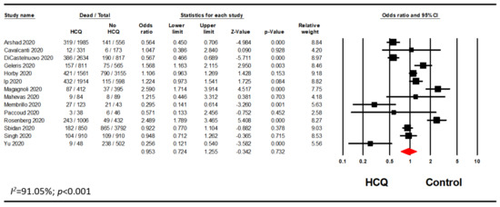 Overall meta-analysis evaluating the association between HCQ and mortality.