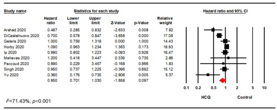 HCQ alone subgroup analysis using the adjusted HR.