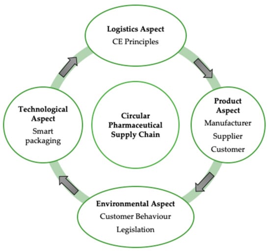 In CE implementation, a definitive objective is to hold the essential value of items using an item for as long as might be feasible and in a closed loop, such as reuse and recycle. The most suitable path must be explored in terms of approaches and legislation in order to set up circular material dissemination in a closed circle and ensure the sufficiency of the production and consumption of pharmaceuticals. Progress towards CE implementation requires interactions between specialists, the legislation, the supply chain, production frameworks, and utilisation, which are controlled and characterised through authoritative, financial, and instructive instruments.
