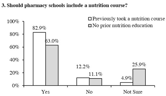 n = 3) of students without prior pharmacy experience reported that they were unsure if the nutrition course should be incorporated in the pharmacy degree curriculum.