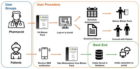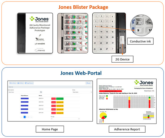 The smart adherence technology system was comprised of a smart multidose blister package and a web-based portal to monitor the patient’s medication intake remotely (see Figure 1 for a description of the adherence technology system).