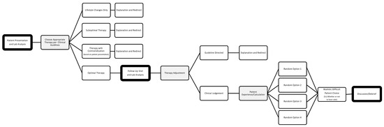 The Choose Your Own Adventure (CYOA) Patient Case Format combines CBL and PBL in an interactive online format. In the CYOA activity, small groups of students work through problems independently, arrive at clinical decisions as a group, and justify their decisions, while simultaneously being guided to the most “correct” answers by built-in survey logic and expert facilitation. In the Interprofessional Education and Clinical Simulation (IPECS) III Course at the University of Tennessee Health Science Center (UTHSC) College of Pharmacy, a traditional paper patient case regarding outpatient diabetes management was transformed into an interactive format utilizing QuestionPro (Dallas, TX, USA), a free online survey platform. This required course is designed to teach students a consistent approach to the pharmacist–patient care process and assess skills-based activities through the use of active learning, team-based learning and clinical simulation. In this course, pharmacy students practice problem-solving skills to develop patient-centered care plans to improve patient outcomes. Class activities demonstrate the integral role of the pharmacist as a member of the outpatient healthcare team. For this activity, second-year PharmD students were tasked with “solving” progressively detailed and in-depth portions of an unfolding fictional, realistic patient case. The objectives of this activity were to improve knowledge of therapeutic management of type II diabetes and to enhance clinical decision-making skills through experience in outpatient diabetes management of a complex patient. Students worked in virtual small groups (using Zoom breakout rooms) and were facilitated by a senior teaching assistant. As students progressed through the evolving case, they were asked to select from a menu of plausible clinical decisions and come to a consensus. Once a clinical decision was reached and students input their rationale into QuestionPro, they were routed to a page that described the outcome of their choice. Each outcome provided an explanation as to why or why not that decision was the most correct choice. Student groups were encouraged to explore the outcomes from different clinical decisions, especially if their initial choice was not ideal. There was only one series of choices that eventually led to the most positive patient outcome. Along with text, the CYOA activity also incorporated images and gifs along each pathway to promote engagement. The groups were intermittently called back to the main Zoom room at designated points along the activity to discuss and justify their clinical decisions with the course instructor. While attendance in the IPECS III course is mandatory, students did not receive a grade for participation in this activity. This activity was delivered over one 50-min class period and was not made available to be repeated individually.