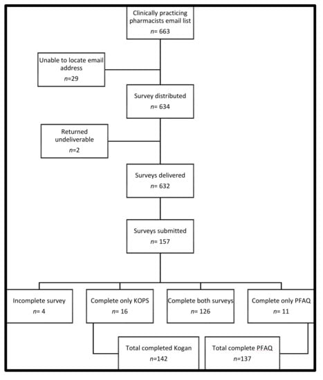 Requests for survey completion were distributed through AHS and Covenant Health email addresses. The email distributed to pharmacists included the information letter and a link to electronically complete the survey. The participants were informed of the anonymity of the survey and that the submission of responses would imply consent. Once information was submitted, the participant was unable to withdraw consent due to the anonymity. The electronic survey was collected through a Google Forms survey [49].