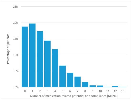 Percentage of medication-related potential noncompliance occurrences at baseline.