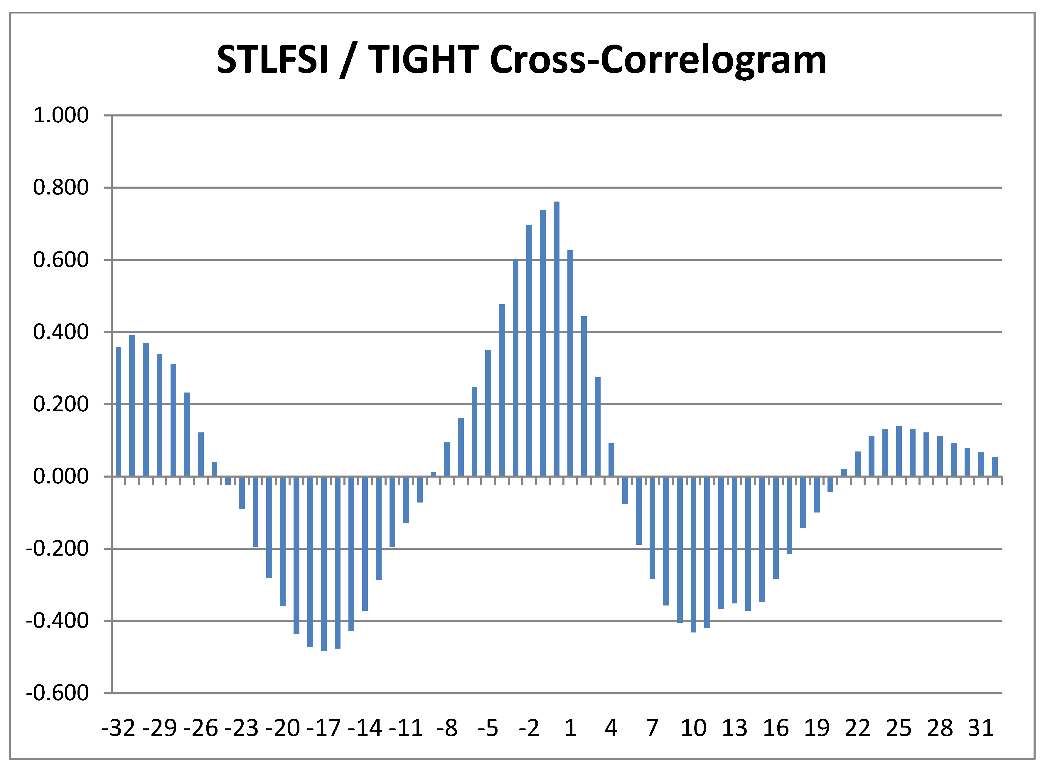 Cross-Correlogram with lags and leads on the x-axis. See Figure 1 caption for sample details.