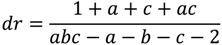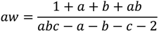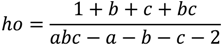 The formulae for the stakes on the home, ho, draw, dr, and away, aw, to obtain a pure arbitrage gain of 1 when the over round across bookmakers is less than one and the home odds are a, draw odds, b, and away odds, c, are given by