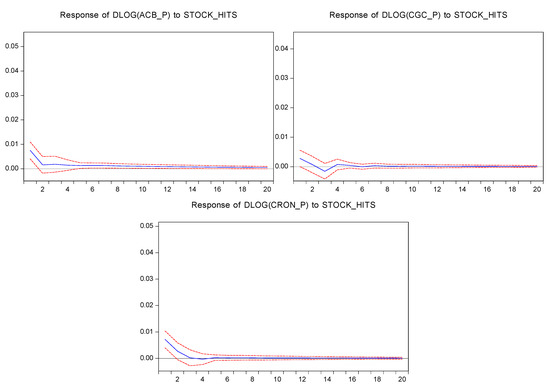Impulse response function (investors’ attention → returns). This figure includes the generalized impulse response function in vector autoregressive (VAR) models studying the response of cannabis stock returns to shocks to investors’ attention.