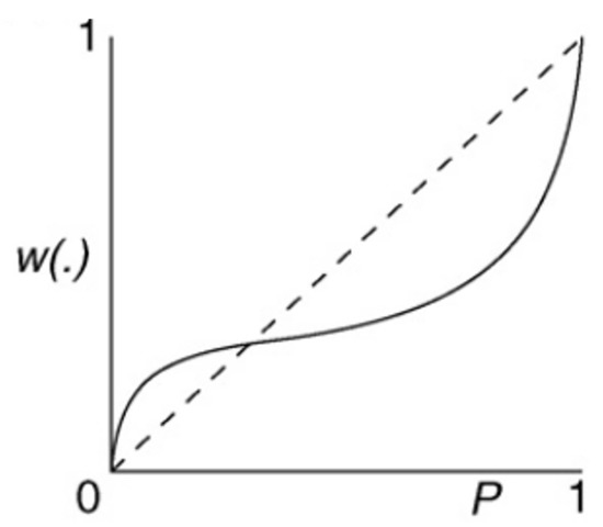 Nonlinear function of probability (P) in the behavioral decision theory.