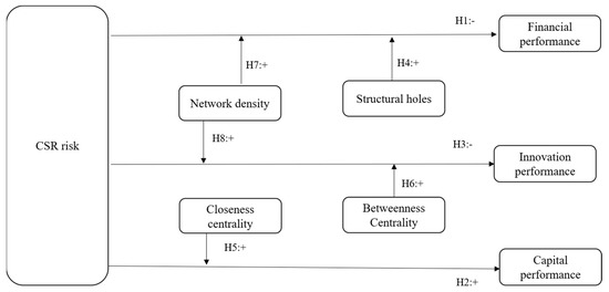 The conceptual framework. The conceptual framework clearly articulates the hypothesis of the relationship between CSR risk and firm performance and the moderating effect of different network variables on their relationship.