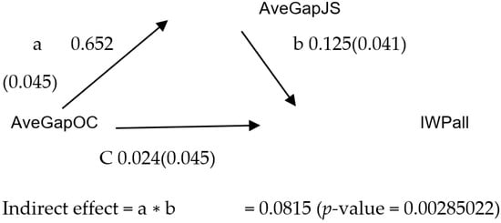 Similarly, the second analysis was to find the mediating role of JSS in AveGapOC and IWPall. The result of Sobel test is presented in Figure 4.