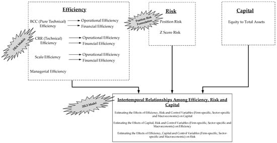 Following the data description, the methodology introduced in this section comprises two building blocks. The methodology and specifications that are applied for measuring efficiency and risk specifications are presented. Then, the model that addresses the relationship between efficiency, risk, and capital is described.
