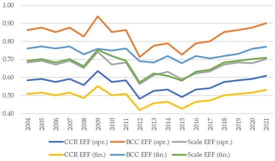 - Banker, Rajiv D., Abraham Charnes, and William Wager Cooper. 1984. Some models for estimating technical and scale inefficiencies in Data Envelopment Analysis. Management Science 30: 1078–92. [Google Scholar] [CrossRef]