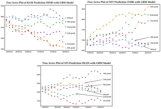ASEAN top 5 stock price index predictions for next 20 periods with GBM model.