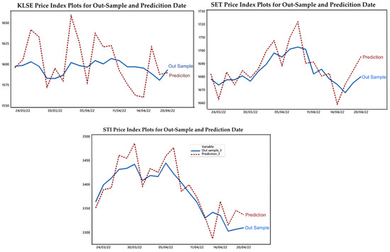Table 1 shows the differences in the total sample data used due to the different trading periods. Abidin and Jaffar (2014) suggested that in an analysis that requires an accuracy test model, we must divide our data into in-sample and out-sample. The minimum size of the out-sample data was 5% of the total data. In this study, the total data was between 233 and 235. Then, to simplify the accuracy test, we decided to uniform the amount of out-sample data. By selecting a number of out-sample data points of 20, we reached the minimum size. However, the out-sample data used would be arranged the same for 20 periods to make it easier to compare with the predicted values.