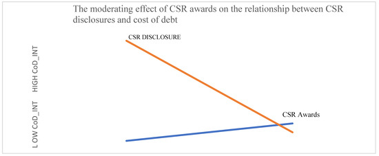 2.7. Moderating the Role of CSR Disclosures and CSR Awards on the Cost of Debt