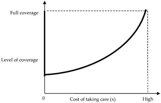 Hence, a reduction in the perceived risk (a reduction in ) leads to a lower level of care. It follows from the fact of that, to restore care to the second-best level, a lower level of coverage is required.