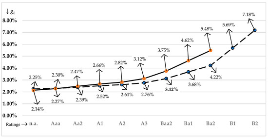 Table 4 reports the fifteen credit spreads given by Damodaran (2021) for the years from 2013 through 2020 and for the average of these years in the last or “2013–2020” column. The last two rows of Table 4 supplies means and standard deviations for the fifteen credit spreads and their averages in the last column. The “2020” column reveal that the mean and standard deviation for the fifteen credit spreads for the year 2020 are 5.1147% and 5.123%, respectively. Among all years, the year 2020 most resembles the mean of 4.9593% and the standard deviation of 4.7383% for the eight-year period. These latter two values are found in the “2013–2020” column in the last two rows.