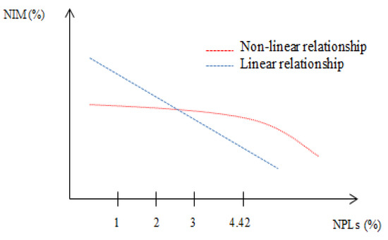 Figure 1 shows both linear and non-linear relationships between NPLs and bank profitability based on the defined threshold of 4.42%.