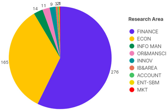 Figure 4 presents the most contributive areas of knowledge to this literature strand. As expected, finance and economics are the most relevant, with 276 and 165 publications, respectively.