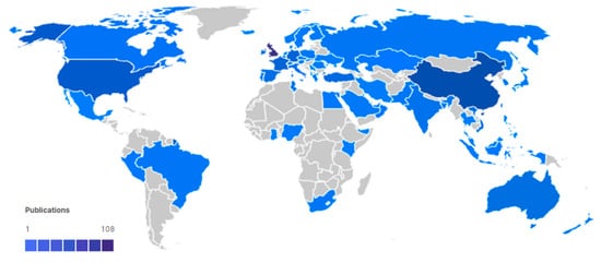 Publications by country world map.
