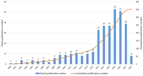 We first examined the output of publications over time. As shown in Figure 2, the first publication appeared in the WoS database in 1998. The number of publications has steadily grown until 2020, which is in line with the increasing number of PB cases after 2001 (). The COVID-19 crisis, which ended PB processes in many cities or shifted the process online and significantly impacted the quality of citizen participation () and instantly reduced research interest in this area, may be the cause of the decline in scientific output beginning in 2020.