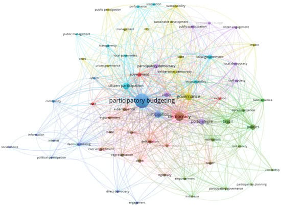 Based on the co-occurrence analysis, six distinct clusters were isolated. These clusters are given below (Table 4). Although some overlaps are evident, these clusters can be loosely delimited. Cluster 1 (red cluster) is a cluster of Democracy and Civic Engagement. Cluster 2 (green cluster) is a cluster of Decentralization and Institutions. Cluster 3 (dark blue cluster) is a cluster of Decision-Making. Cluster 4 (purple cluster) is a cluster of Urban and Sustainable Development. Cluster 5 (yellow cluster) is a cluster of Civil Society. Cluster 6 (light blue) is a cluster of Accountability, Public Management, and Performance.